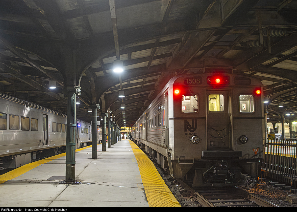 A late evening train from Dover has arrived at its final stop at Hoboken with a set of Arrow IIIs making the trip.