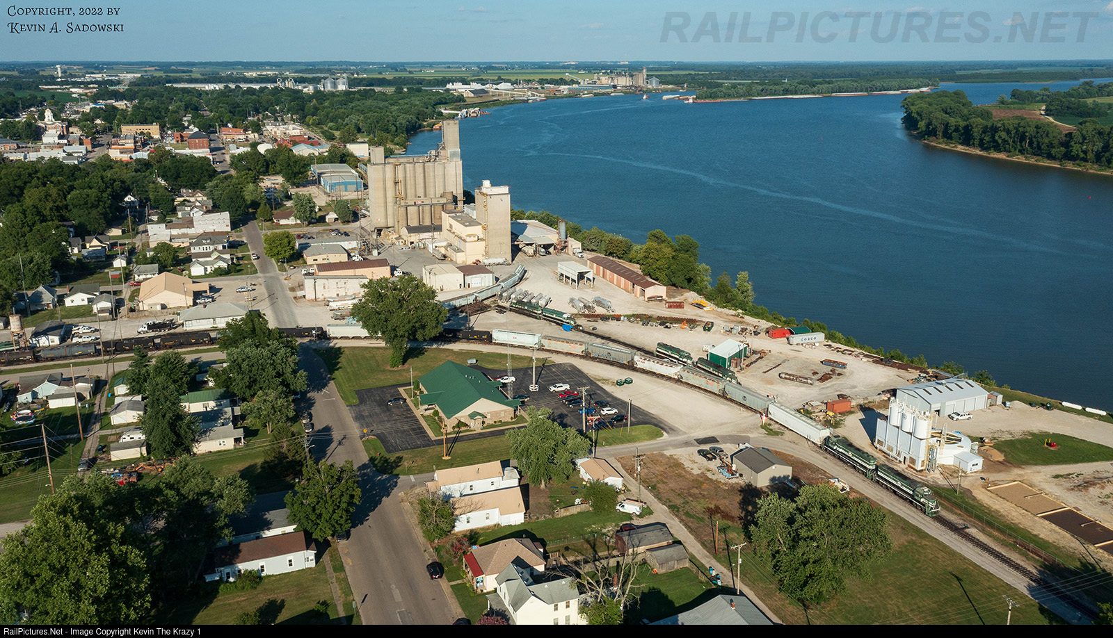 | Evansville & Western Mt Vernon yard job swings around the corner next to the railroads headquarters along the Ohio River as they make a run for Southwind on the southwest side of town. |
