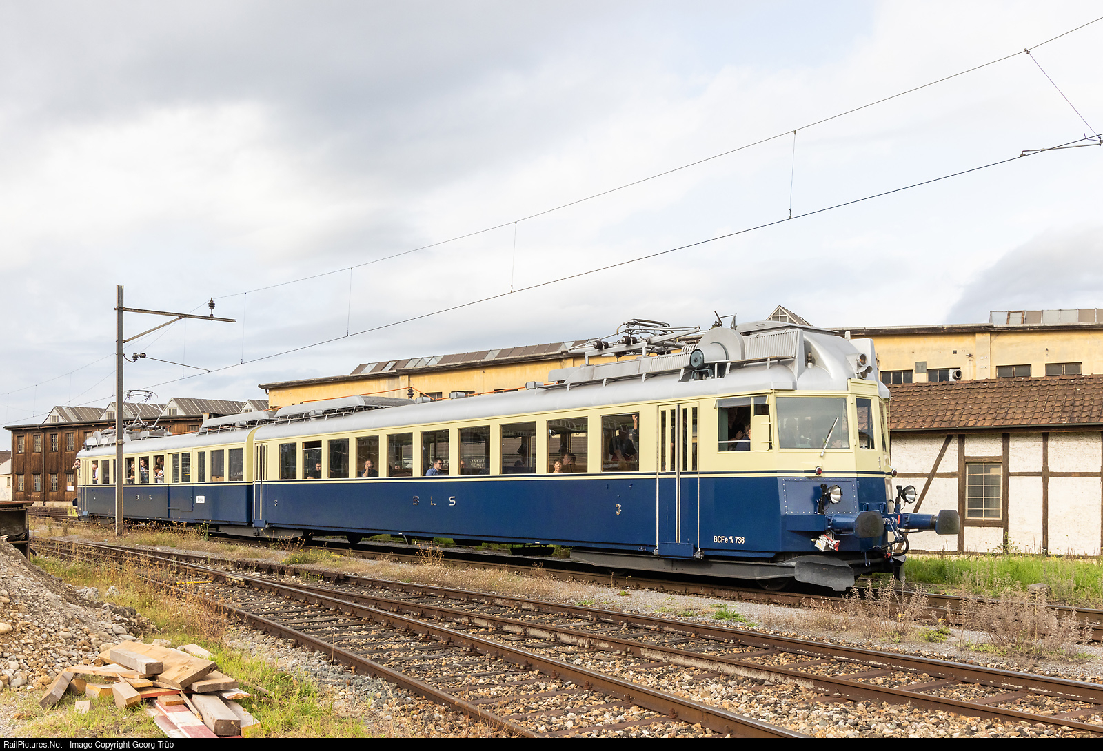 On the weekend august 26/27, 2023, a large vehicle meeting was organised in Olten by the association "Team 10439". "Blue Arrow" articulated railcar BCFe 4/6 # 736 of the BLS Stiftung (BLS foundation) from Burgdorf is entering the event area in Olten depot. This iconic vehicle was built in 1938 by SIG and SAAS for the BLS.