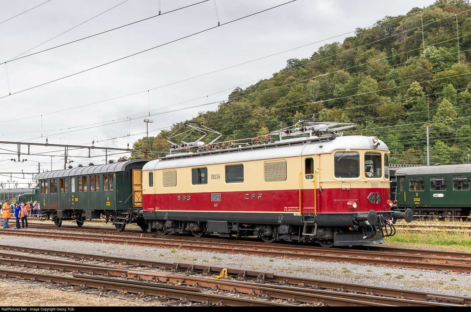 On the weekend august 26/27, 2023, a large vehicle meeting was organised in Olten by the association "Team 10439". Former SBB locomotive Re 4/4 I # 10034 in the red/cream TRANS EUROP EXPRESS colors, privatley owned and operated by association TEE-Classics, came the long way from Romanshorn together with privately owned passenger car C # 5820 "Thurgauer Stube", now used as buffet car.