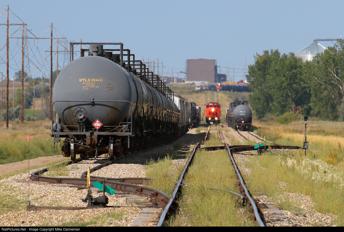 Dakota, Missouri Valley & Western EMD SD60F Nos. 5501 and 5544 slowly roll through the yard at Coal Creek Junction, North Dakota, on August 29, 2023. Up on the hill in the background is the DMV&W’s Geep stationed there switching the west end of the yard.