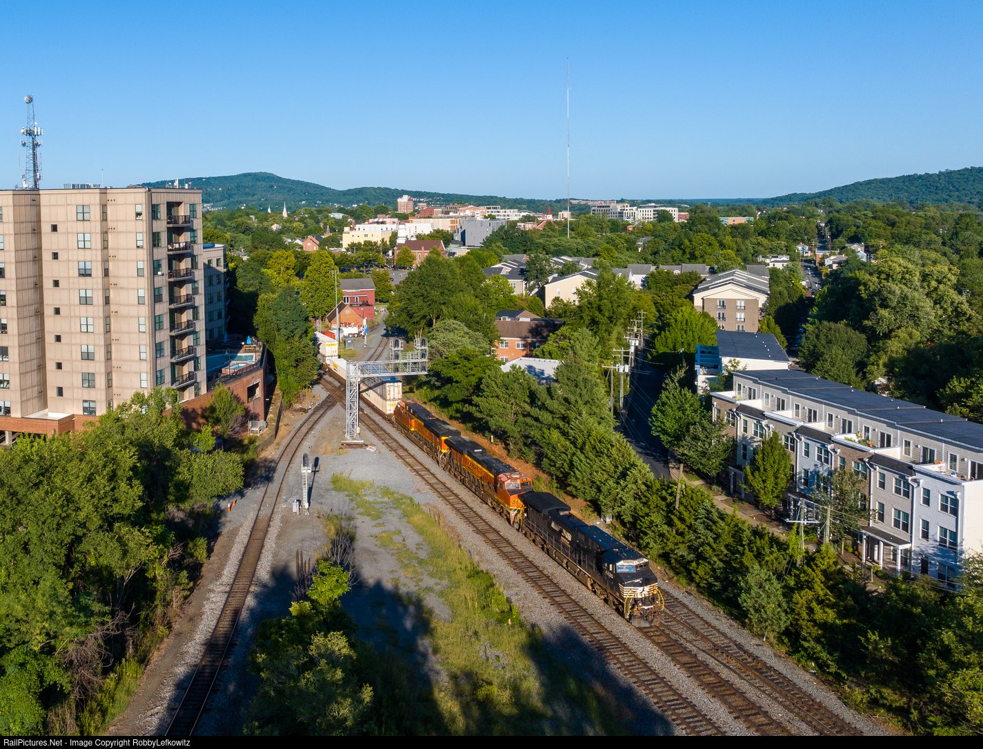 NS 4220 leads intermodal train 289 southbound across the Charlottesville diamond in which the NS Washington District crosses the Buckingham Branch. This 289 provided some nice color, as the 2 BNSFS trailed. |