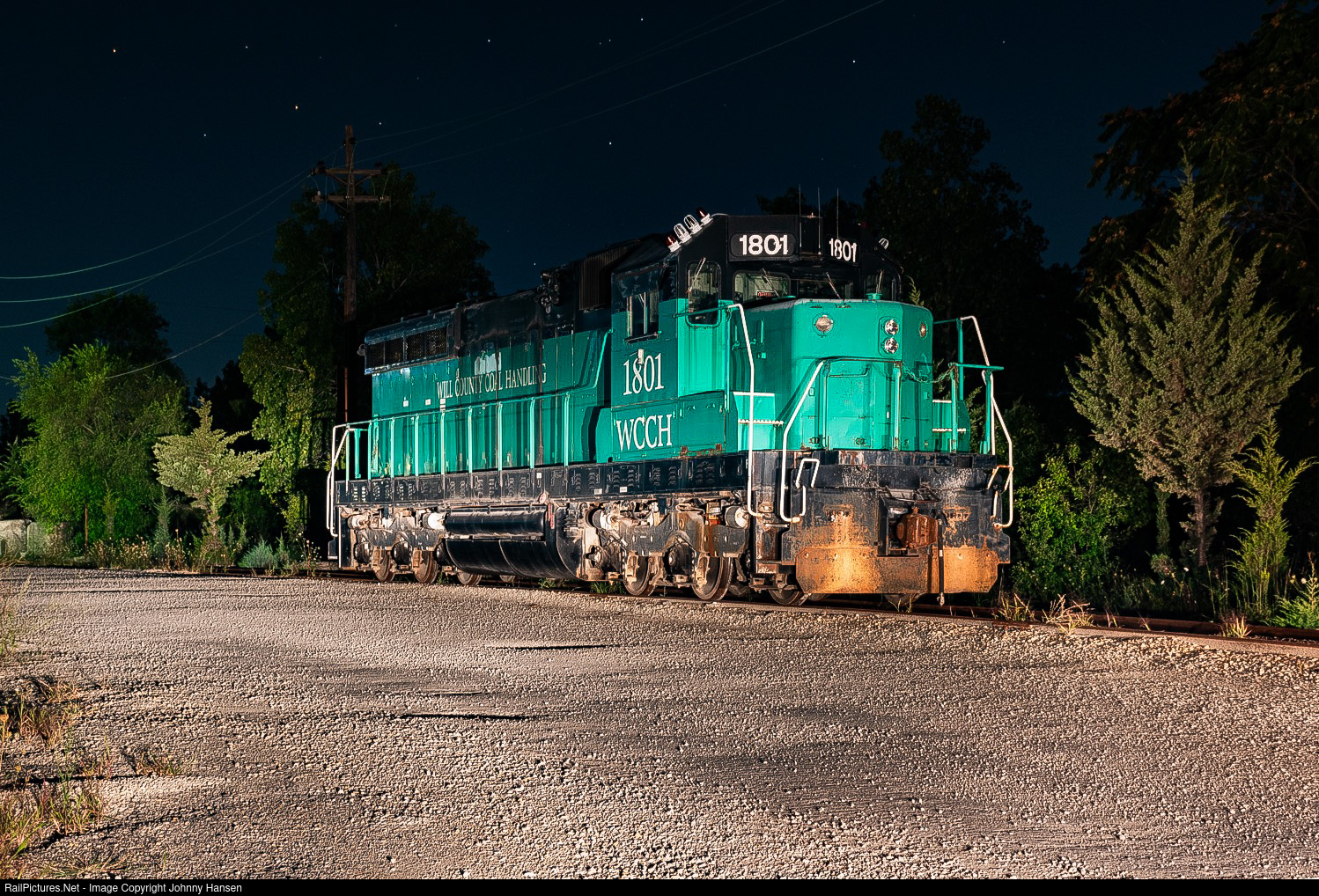 NRG’s Will County Generating Station in Romeoville, IL owned 2 EMD SD20 locomotive’s. WCCH 1801 and 1802. Those SD20's were used to haul coal trains in and out of the plant from the staging yard where Union Pacific delivered trains to them. The days of coal at Midwestern Energy’s Will County Generating Station have came to an end in June 2022, as the rumors of NRG retiring the coal-fired plant were true. The fate of the SD20’s is still up in the air with many rumor’s floating around of their fate. The 1802 sits stored inside the retired power plant in Romeoville, while the 1801 is seen here sitting under the night sky, and also stored at Hanson Material Service’s facility in Lockport. Seeing these SD20’s pull coal trains was always a nice treat. One year later after the coal-fired plant was retired, still being stored in August 2023, time will tell what’s next for these SD20’s.