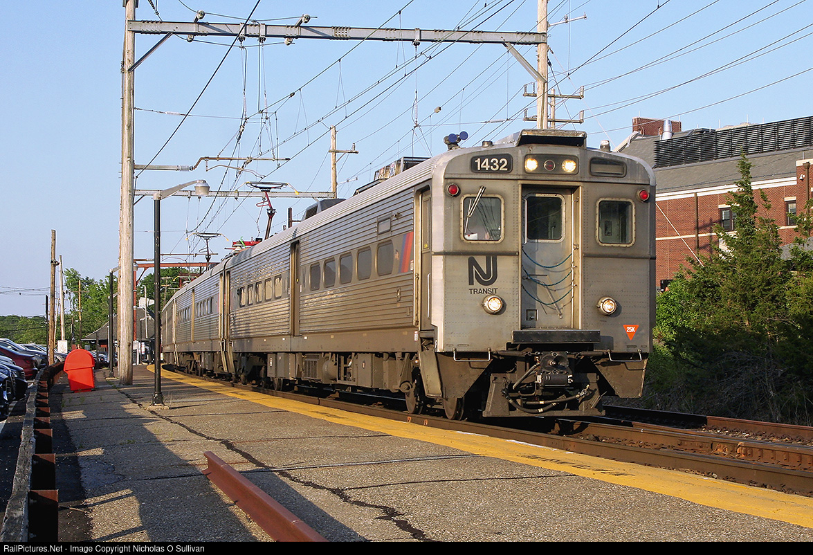 An Arrow III EMU trainset from Hoboken to Gladstone. While the completion of the wooden catenary pole replacement project and the replacement of the Arrow IIIs have long been promised, as of 2023, these elements remain on the line. The wooden catenary pole replacement project began in 2007 with an indefinite completion date, and the Arrow III fleet retirement has been continuously pushed back due to various delays with the replacement equipment. In the background, the new Berkeley Heights Municipal Complex, opened in April 2021, can be seen.
