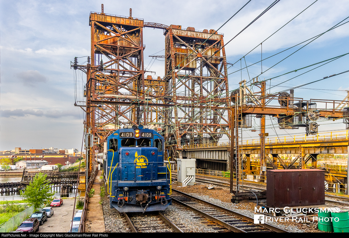 CNJ Over Dock. On Tuesday, September 5, 2023, NJ Transit's CNJ Heritage Unit, GP40PH-2 4109 (née CNJ 3677, EMD, 10/1968), made a rare appearance on the Raritan Valley Line, leading train 5445. The 13 GP40Ps were purchased for service on the Raritan Valley and North Jersey Coast Lines, so 55 years after delivery, the unit is just returning to its home rails, generally the domain of PL42s and ALP45-DPs. Dock Bridge spans the Passaic River, and is slated for rehabilitation as part of upgrades to rail transportation in this area.