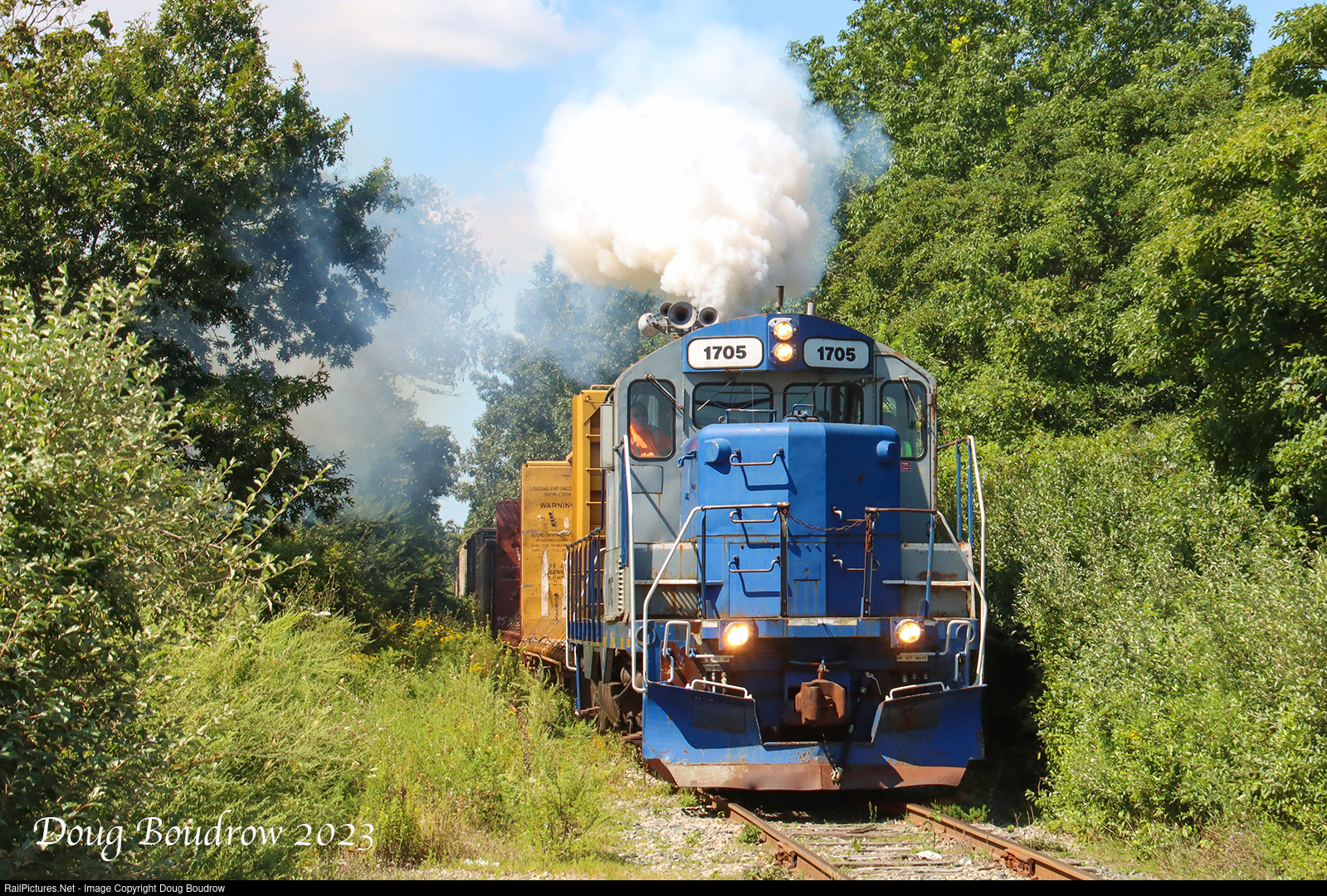 | Although a fraction of what it once was, the Bay Colony still runs in 2023. The on-demand job services two customers in Dartmouth and interchanges with Mass Coastal in New Bedford. They operate with a pair of classic GP9s. The train is approaching its destination in New Bedford about to cross Shawmut Ave. |
