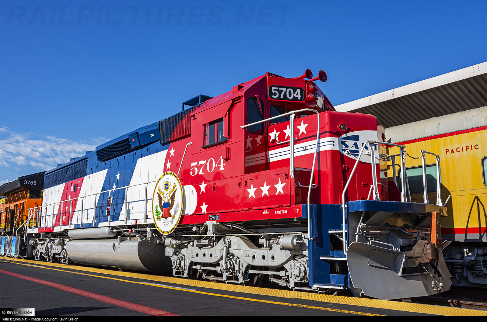 Glistening in its beautifully restored Bicentennial paint scheme, the ATSF 5704 sits on display at Los Angeles Union Station for Train Festival 2023. While it is currently being stored in the BNSF Commerce Diesel Facility, this eye-catcher will ultimately call the Southern California Railway Museum in Perris, CA home.