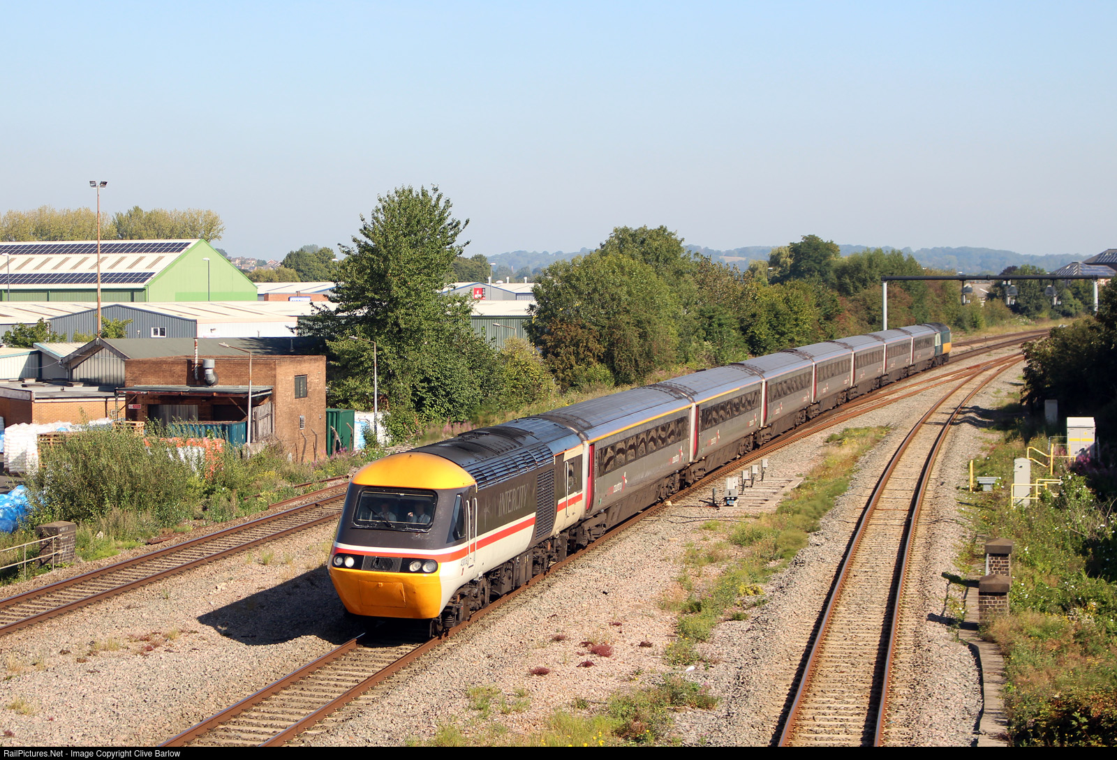 A Cross Country Trains HST led by 43008 approaches Mansfield Road overbridge, Derby, whilst forming 1V50 0606 Edinburgh - Plymouth on 5th September 2023.