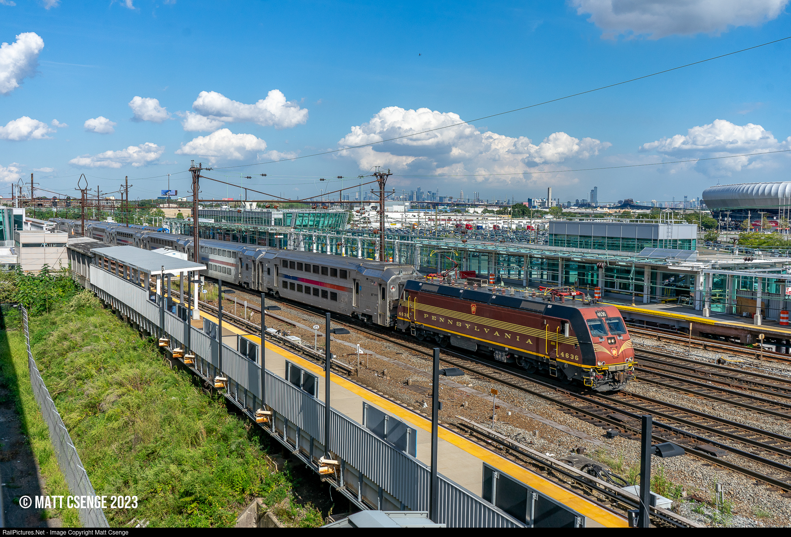 NJ Transit ALP-46A no. 4636 (Bombardier, 2010-2011) is seen leading North Jersey Coast Line train 3509 through Harrison Station, its Pennsylvania Railroad heritage scheme fitting perfectly on the former Pennsy mainline. |