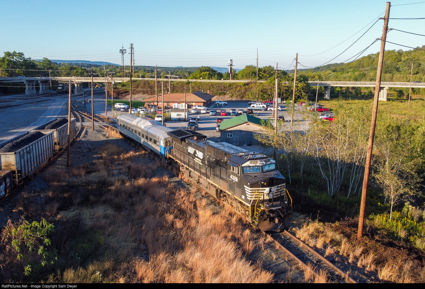 NS train 955 sits on the swamp track with a unique visitor. Ex-New Haven RDC #9167 has been undergoing restoration since 2014, and after nearly a decade, it's done. This car will soon be delivered to the Bellefonte Historical Railroad Society, and will likely run on Nittany and Bald Eagle excursions in the near future. |