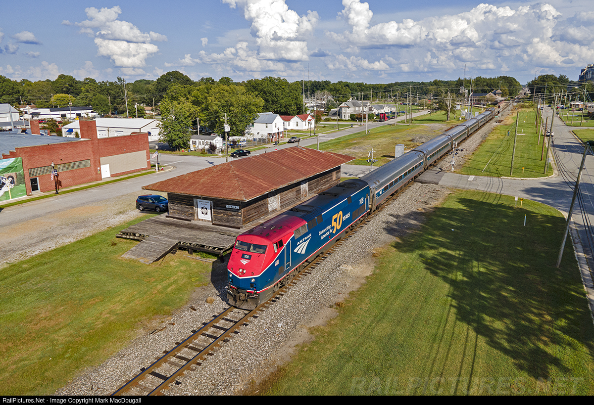 RailPictures.Net Photo: AMTK 108 Amtrak GE P42DC at Selma, North Carolina by Mark MacDougall