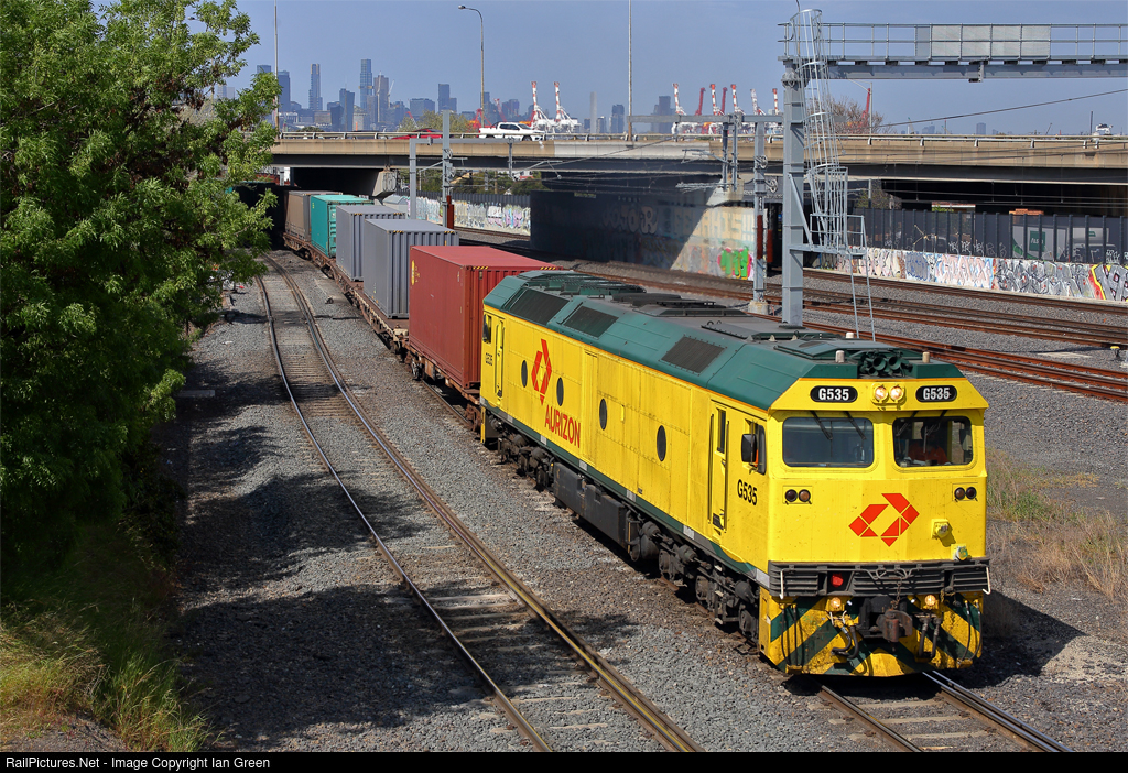 G535 with 3MP1 Aurizon freight passes through West Footscray.