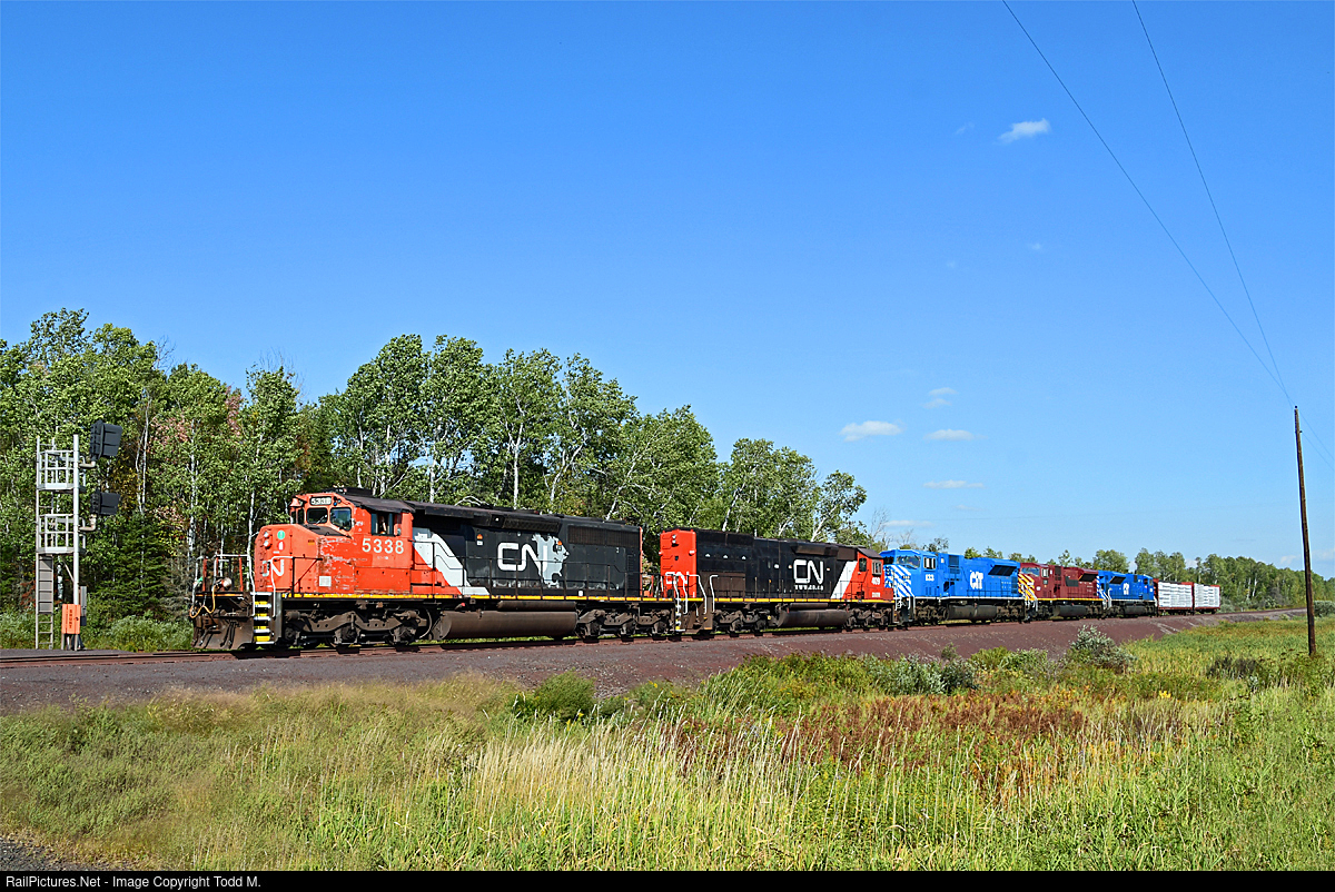 | The local job that runs from Two Harbors to CN's Keenan yard today has three SD9043MACs in tow that were on lease to Northshore Mining's RR while they waited for their SD70ACes to arrive to be used as primary power. These are now allegedly going to be scrapped. |