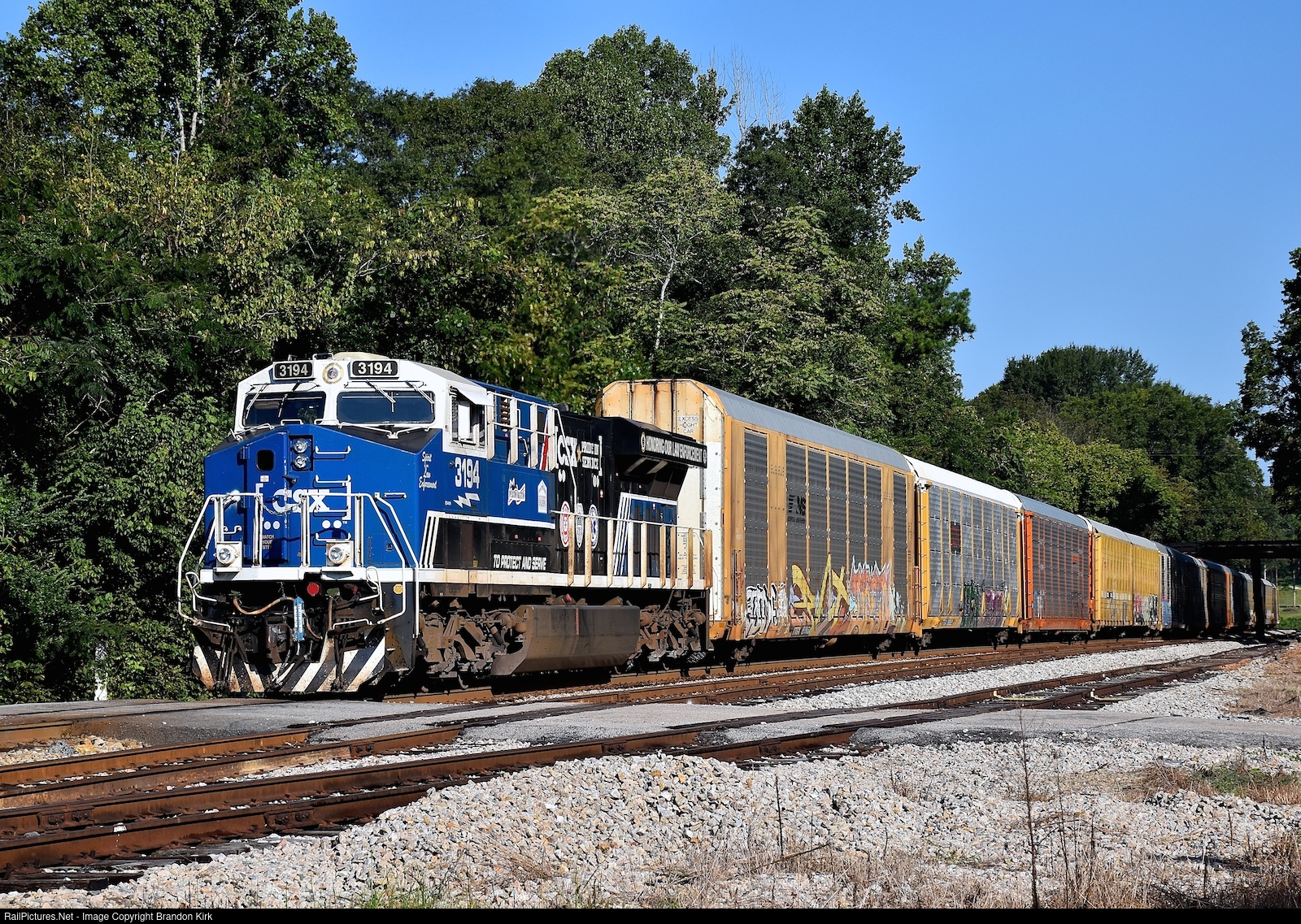 Bringing up the rear of this northbound autorack, CSXT #3194 sports a special scheme "The Spirit of Our Law Enforcement". The automobiles in tow are out of Alabama and Georgia. This train is headed to Louisville, KY.