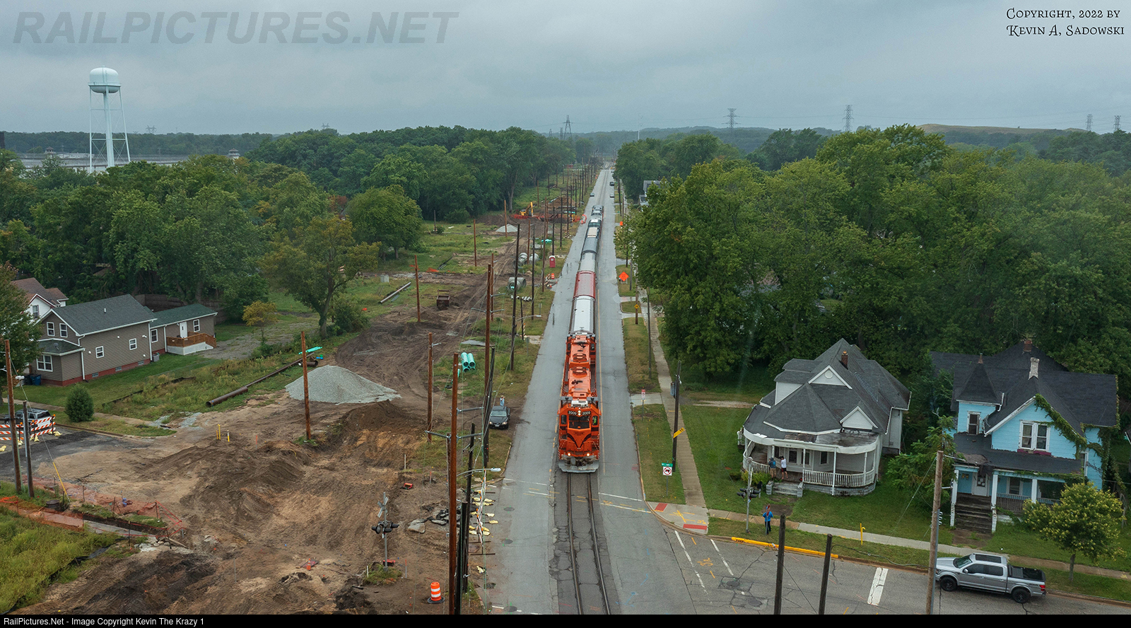 Construction for the double track alignment can be seen as the South Shore heads down 10th Street with the AAPRCO special.