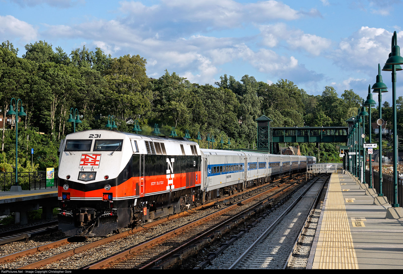 Going to Poughkeepsie. New Haven P32AC-DM 231 passing through Scarborough station with Metro-North train 855.