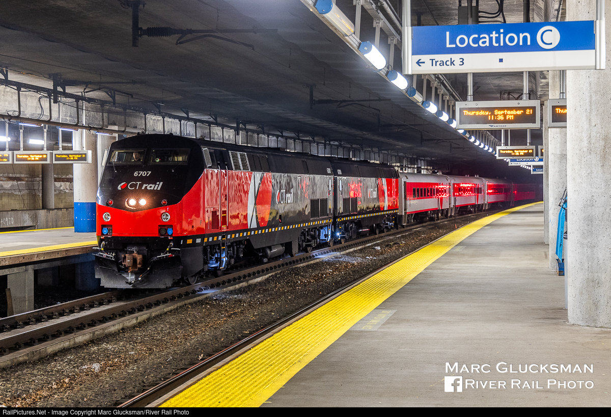 CTrail in RI. When CTrail Hartford Line service began on June 16, 2018, Connecticut DOT leased 16 MBB built coaches from MBTA to supplement their existing fleet of 33 Mafersa cars. As Shore Line East service is generally provided by M8s since 2022, the state placed the MBB cars out of service and returned them to MBTA. On their night of September 21-22, 2023, "CDOT Extra 6707" brought the cars from New Haven, Connecticut to Boston, Massachusetts, where they were cut off and left for MBTA. The engines then returned to New Haven, the only time CTrail branded equipment has ever been up the Northeast Corridor Line as far as South Station. The train is seen passing through the Amtrak/MBTA/RI DOT Providence, Rhode Island Station where it would be held to allow an Amtrak train to pass. The trip was limited to 79mph due to the speed of the MBBs and with only locomotives 50mph on the return trip.