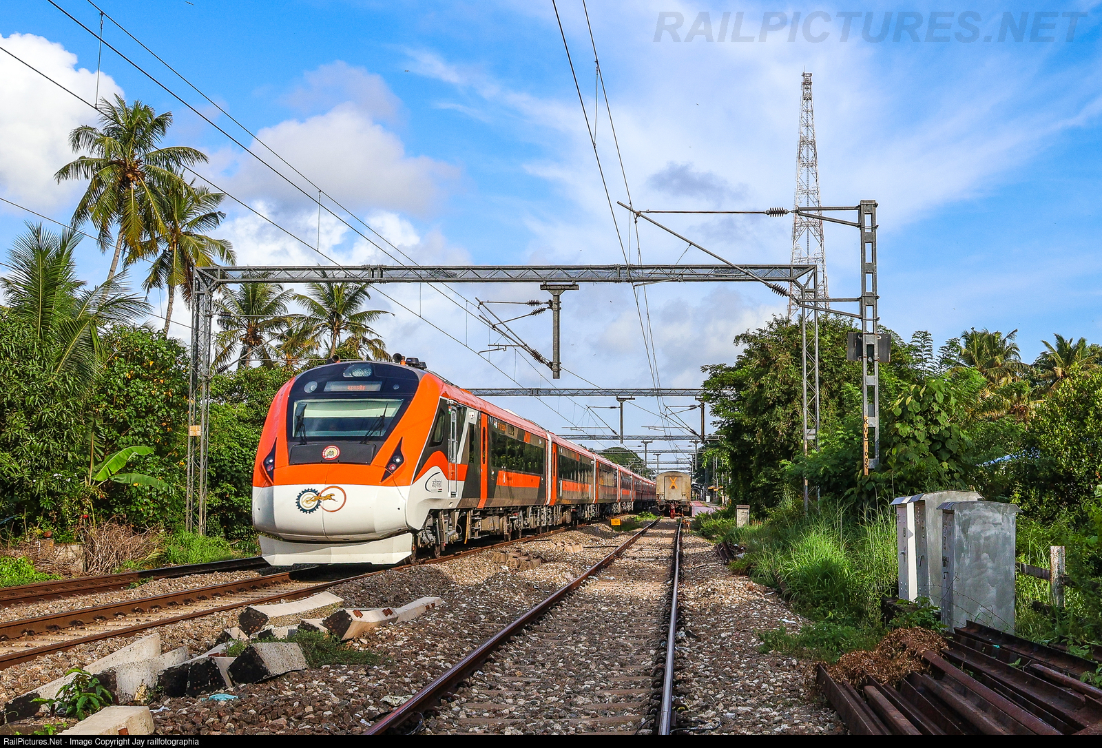 Tangerine color was shining in evening light as the new Vande Bharat Express cross Kadakkavoor on its way to Kasaragod