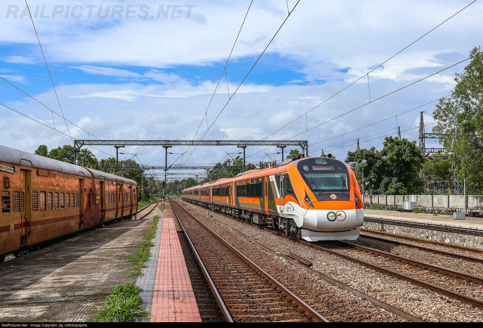 New Vande Bharat Express at the last leg of the journey, bang on time, rushing to Thiruvananthapuram Central
