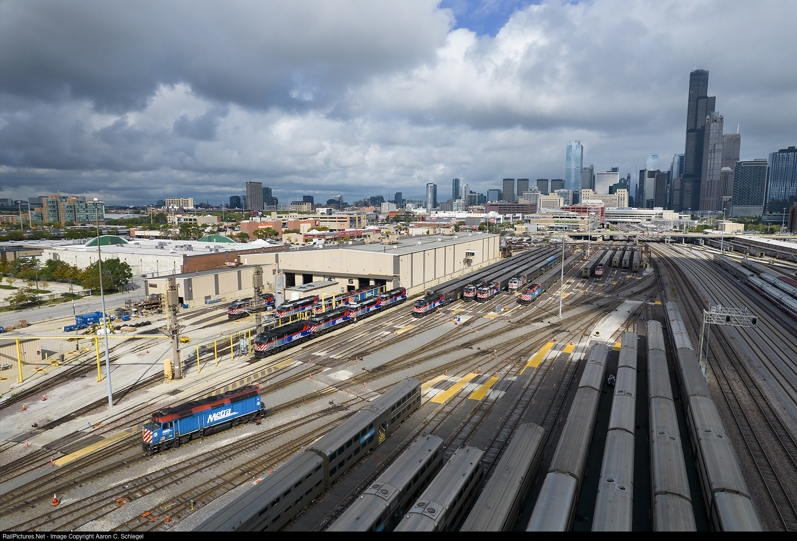 | Sitting in the foreground the METX 112 is being moved in the BNSF Metra yard in Chicago. If memory serves this yard had slang name "The Tiger Pitt" years back. |