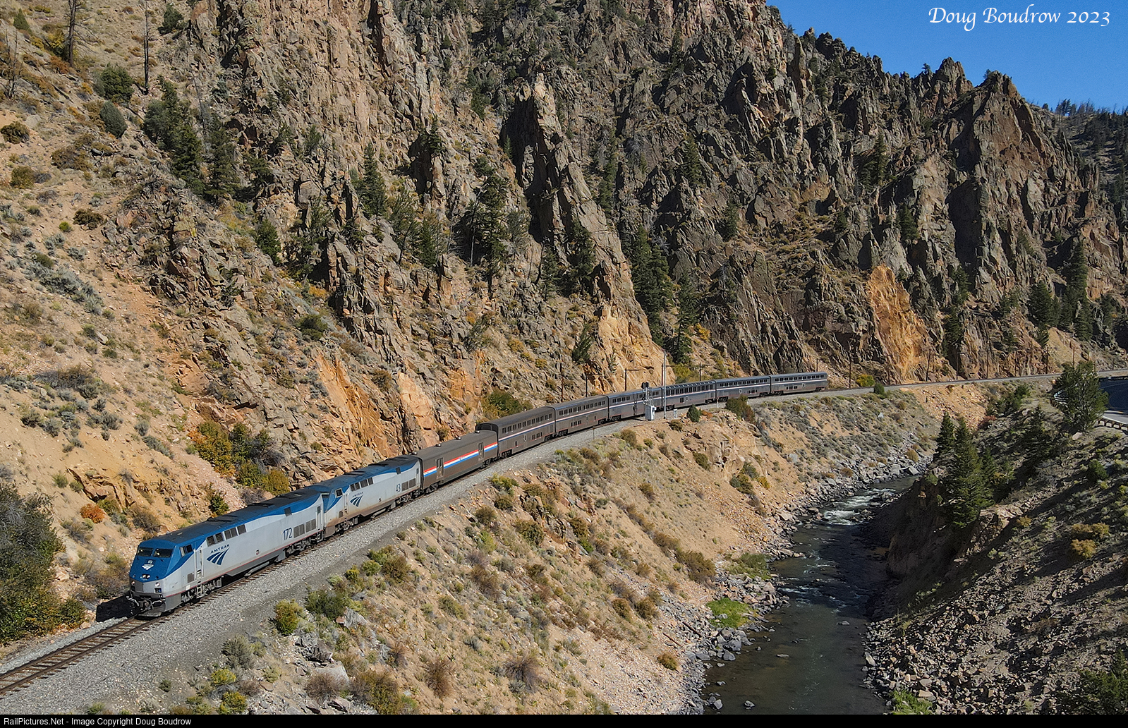 RailPictures.Net Photo: AMTK 172 Amtrak GE P42DC at Hot Sulphur Springs, Colorado by Doug Boudrow