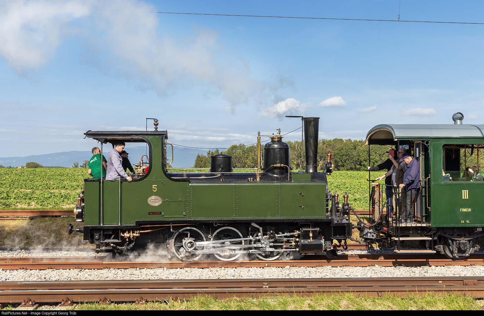 For the 150th anniversary (1873 to 2023), the meter gauge Lausanne-Echallens-Bercher Railway invited as guest locomotive the G 3/3 # 5 of the Blonay Chamby Museum Railway. Together with the two own passenger cars C # 12 and C # 10 a nice train could be formed, which ran three times between Echallens and Bercher on both days of the weekend September 30th/October 1st. The first train is shunting in Sugnens, when running back from Bercher to Echallens. The steamlocomotive was built in 1890 by the Alsatian Mechanical Engineering Company (EMBG) in Grafenstaden for the Lausanne-Echallens-Bercher Railway (LEB) and is owned by the Blonay-Chamby Railroad Museum since 1973, operational since 1985.