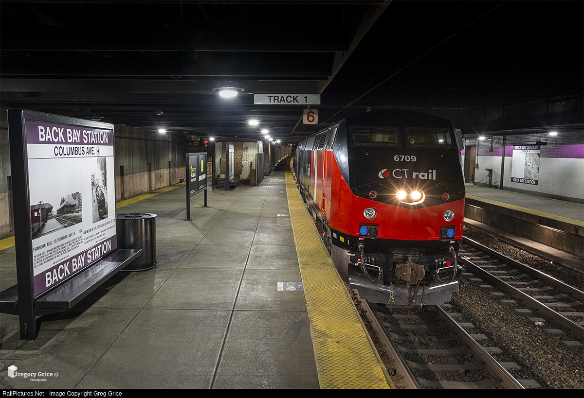 On the morning of September 22nd, 2023, CDOT Extra 6709, consisting of back to back CTrail (CTDX) GE P40BH's 6709 & 6707, heads past Boston Back Bay Station in Massachusetts while heading west down the Northeast Corridor. These two locos are returning to New Haven, Connecticut after having just towed 10 MBB BTC/CTC-3 coaches to the MBTA in Boston. The railcars were on their way back to the MBTA in Boston, Massachusetts after serving a 5-year lease on the Hartford Line in the state of Connecticut.