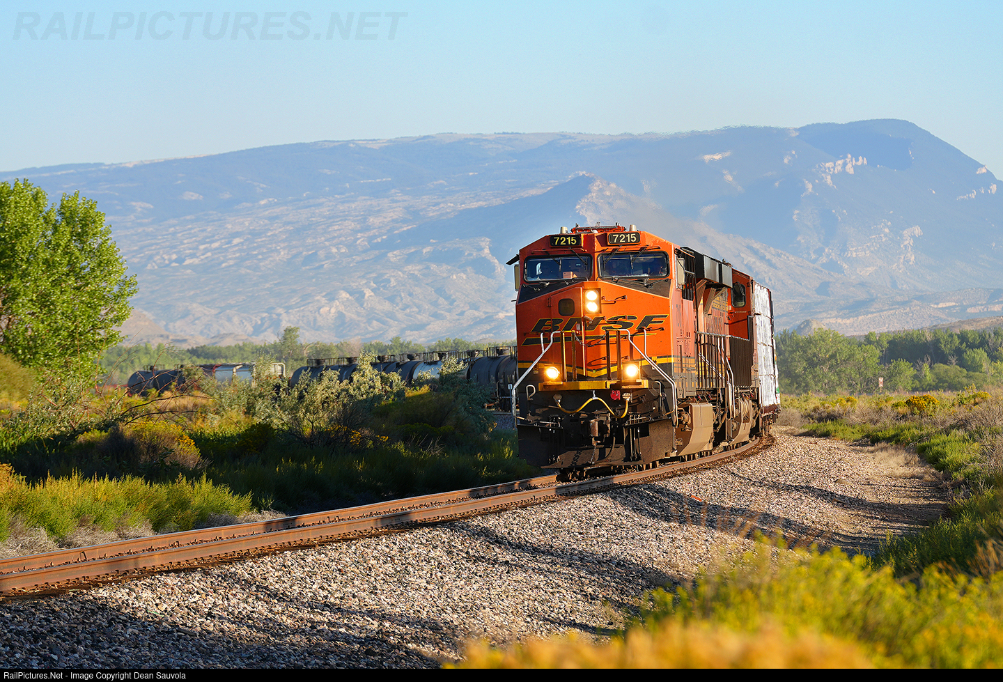 BNSF's Laurel, MT to Denver, CO manifest rounds a curve at Kane, WY. It's about to meet northbound counterpart DENLAU. This stretch of the Casper Sub is remote with few trains, "dark" territory but with some great scenery such as this backdrop of Montana's Pryor Mountains.