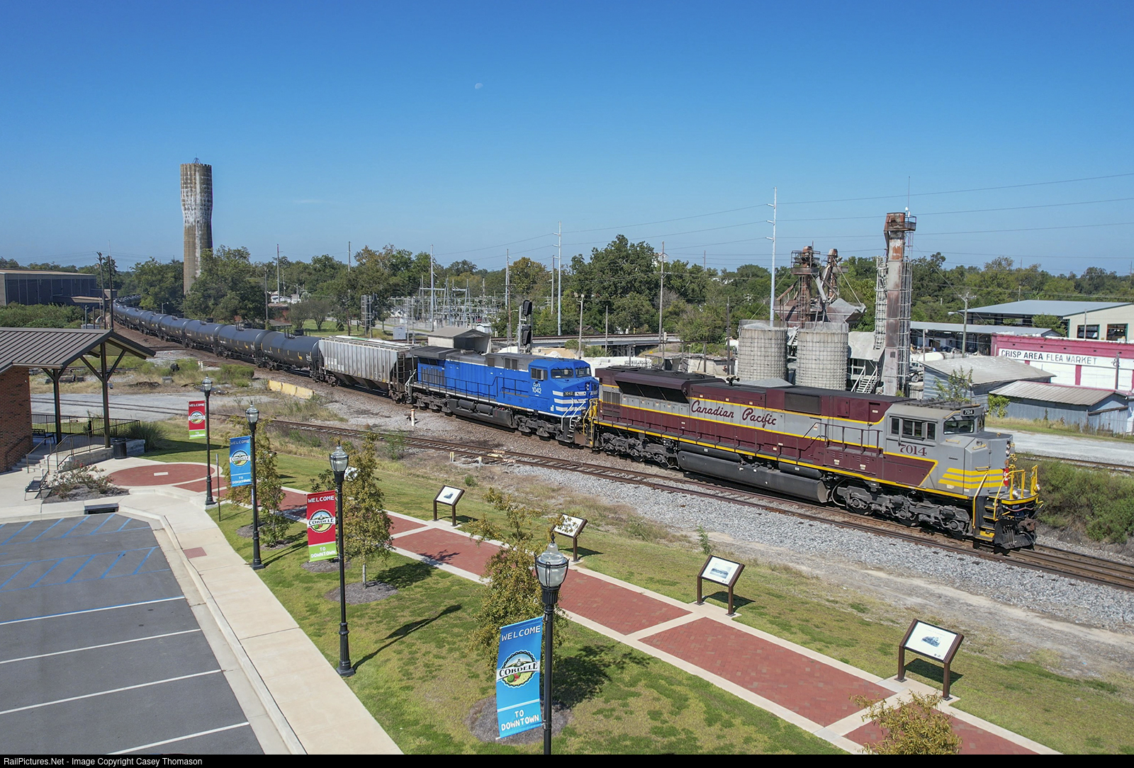 | CSX train B63101 passes through Cordele, Georgia, with a CP heritage-paint SD leading the way, moving ethanol from Chicago to Tampa. |