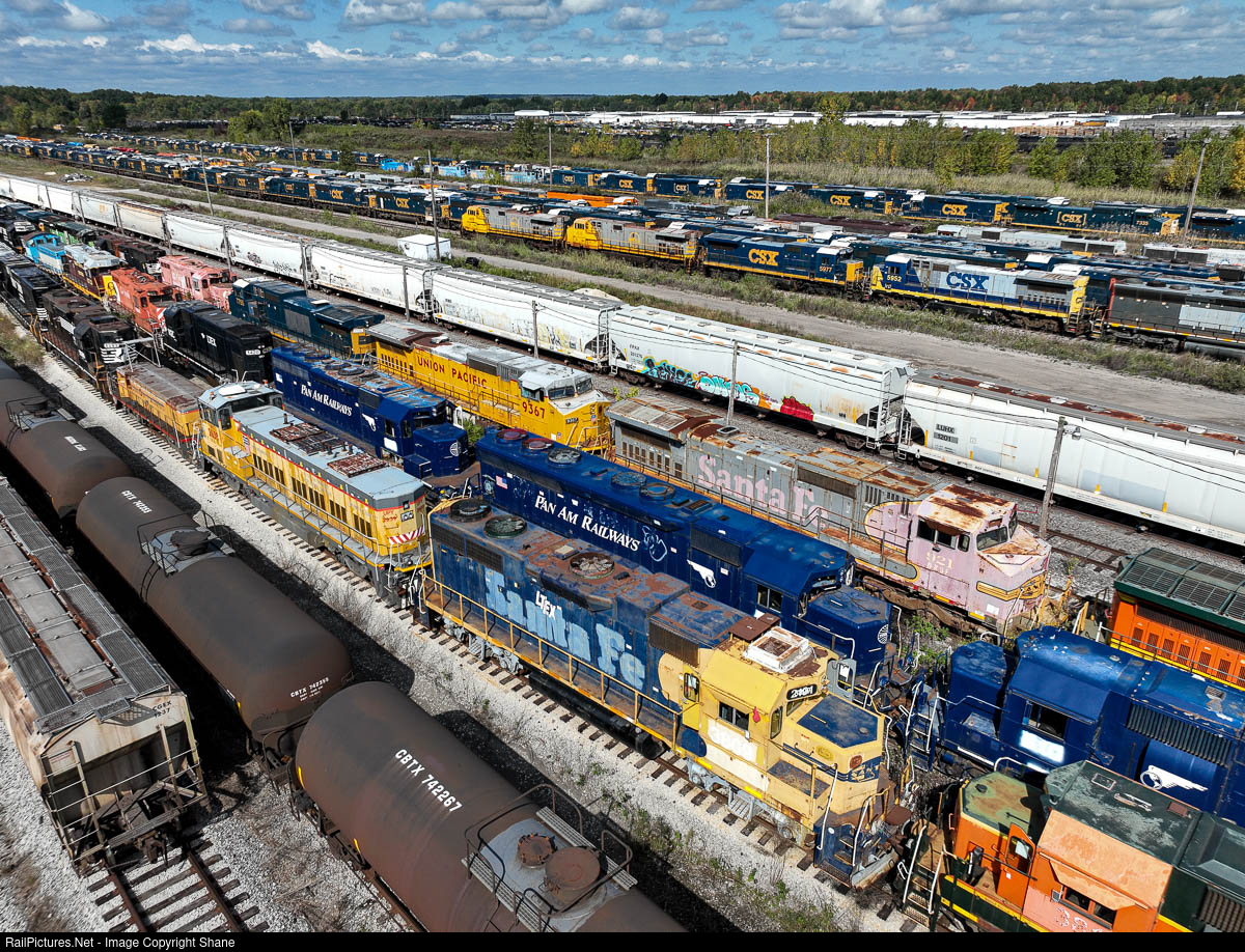 Tons of older Emd's and Ge's sit awaiting there fate at Larry's truck in Lordstown.