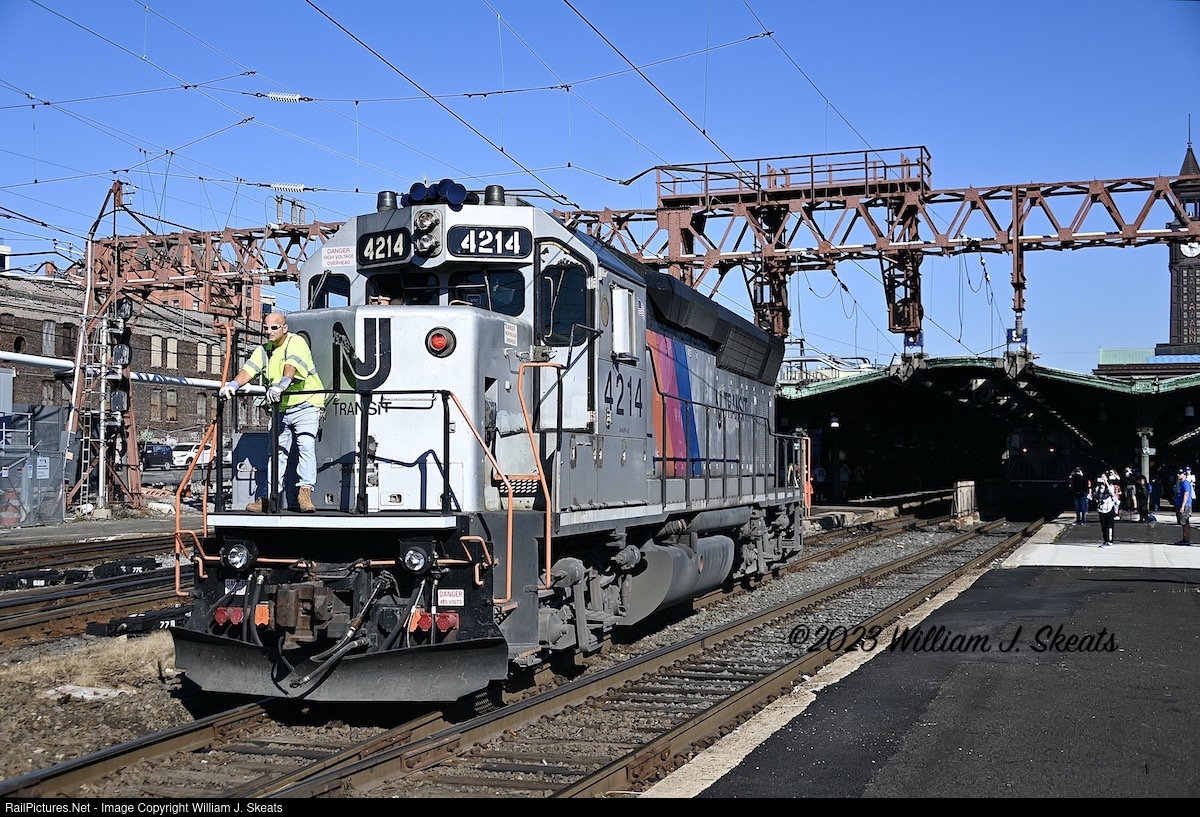 | NJ Transit Meet the Heritage Fleet occurred on October 1, 2023 at Hoboken Terminal. During the festivities GP40PH-2B 4214 is viewed coming off a just arrived train. Lated in the day F40PH-2CAT's 4120 and 4119 would replace the GP40 and would power a train to Waldwick. |