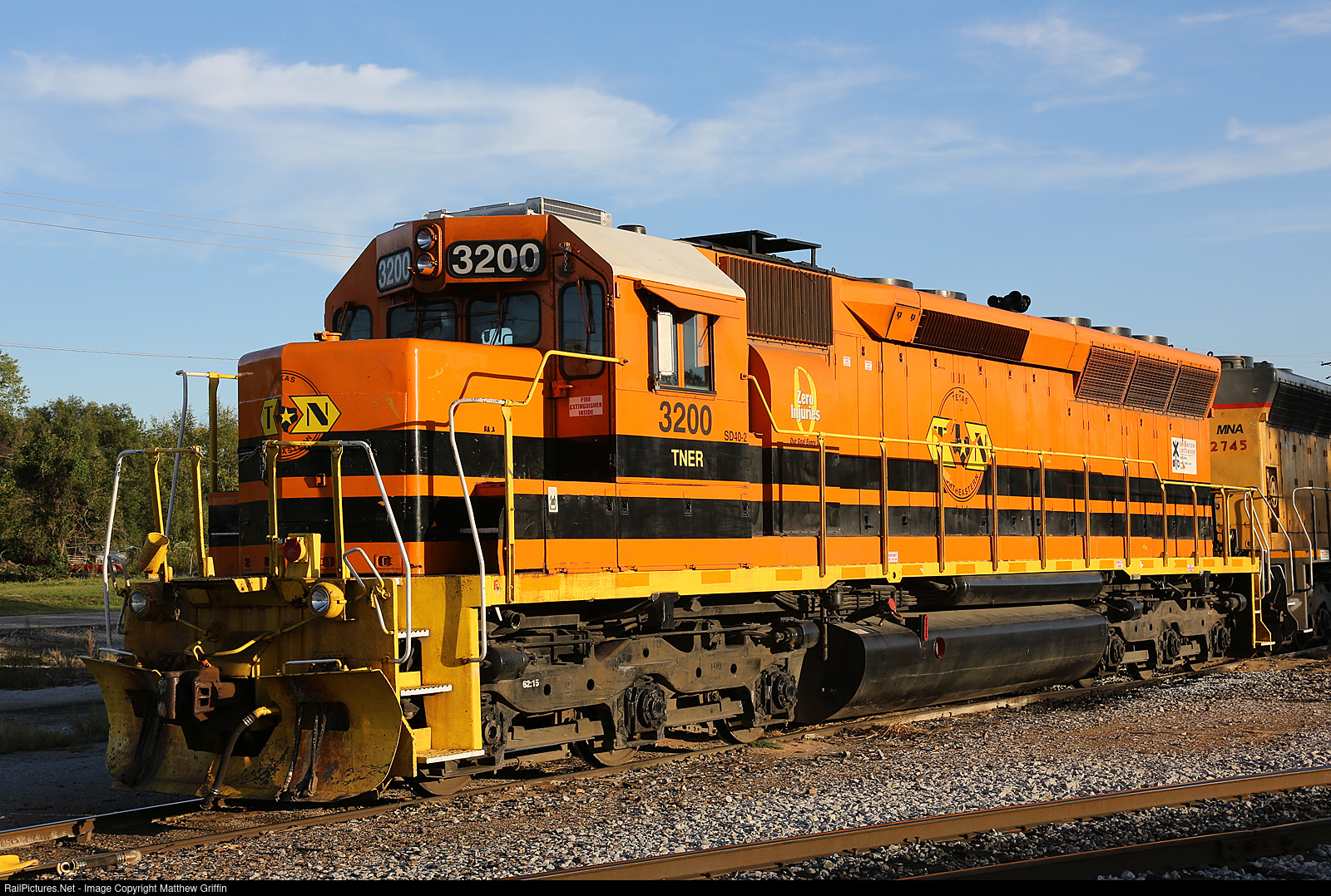 RailPictures.Net Photo: TNER 3200 Texas Northeastern Railroad EMD SD40-2 at Nevada, Missouri by Matthew Griffin
