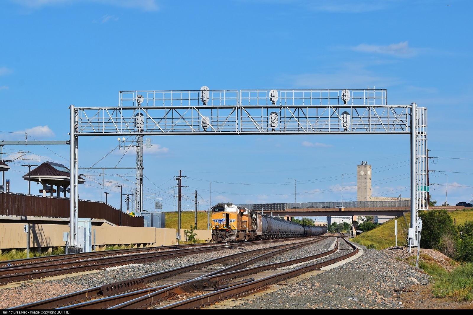 UP 7853 (AC45CCTE) sits in Denver waiting for a new crew that will take the oil can train up the Moffat Tunnel Sub and across the Continental Divide.