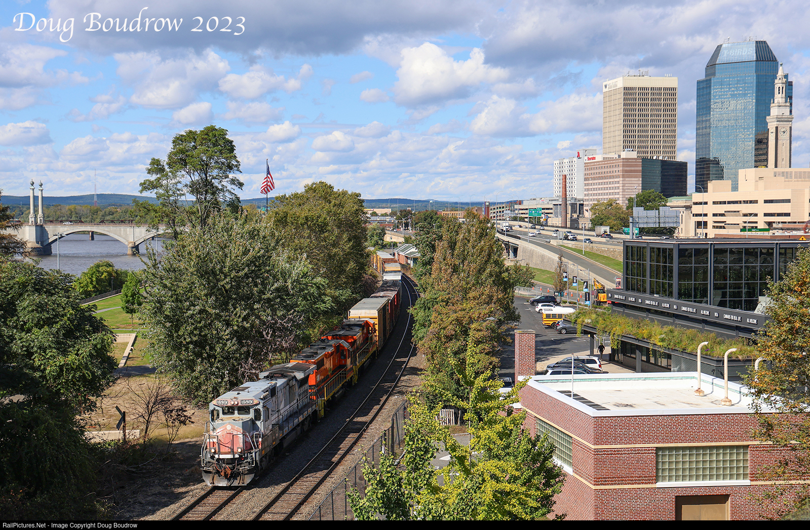 Connecticut Southern CSO-4 is seen departing Springfield on their return trip to Hartford.