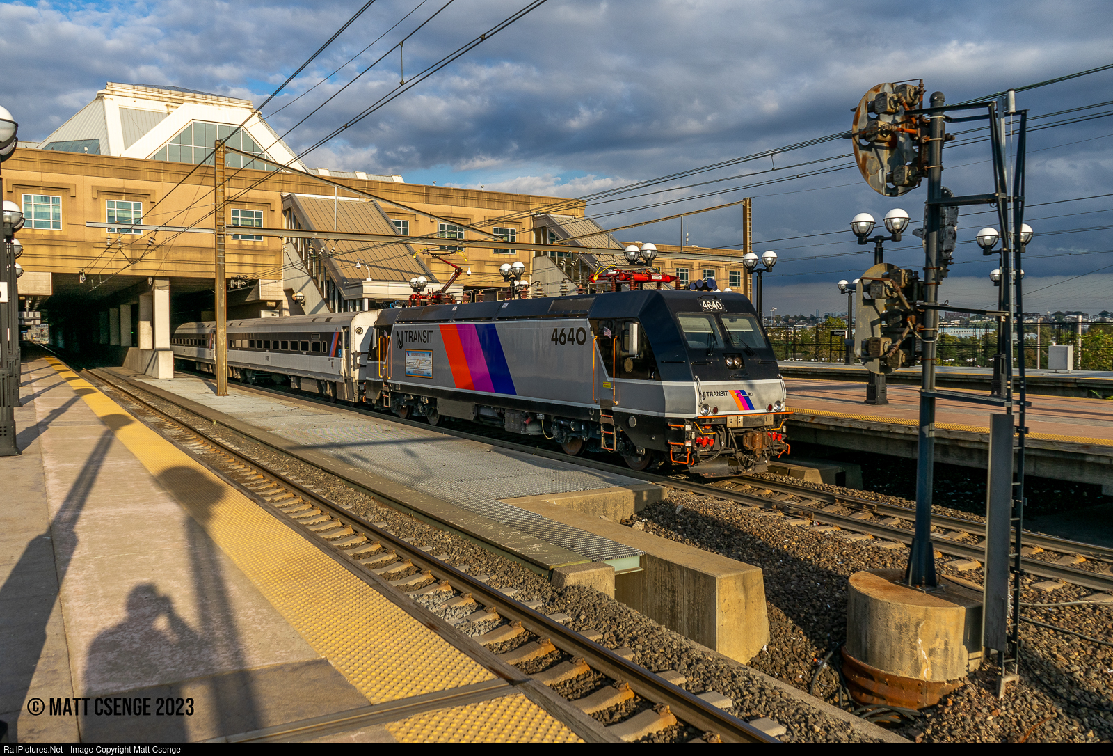 NJ Transit ALP-46A no. 4640 (Bombardier, 2009-2011) is seen leading Northeast Corridor Line train 3947 out of Secaucus Junction Station as the shadows grow long on a fall evening. |
