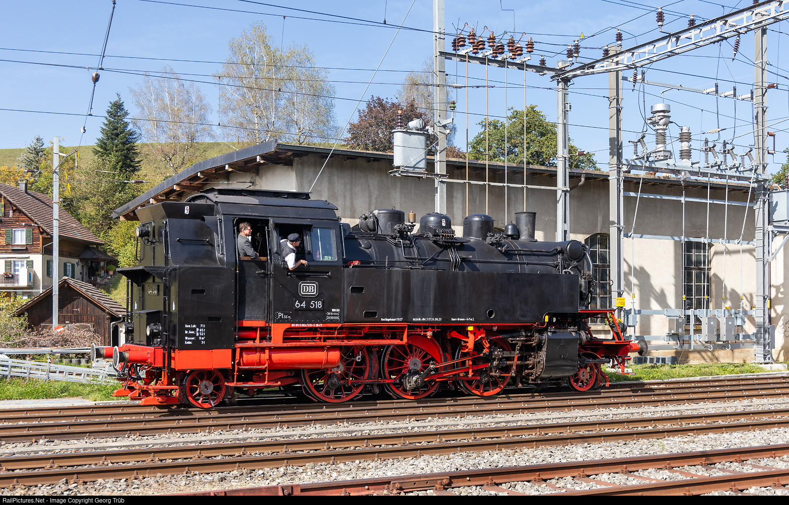 | 2-6-2 former Deutsche Bahn steamlocomotive 64 # 518 of the Eurovapor, built in 1940 by Jung/Jungenthal and withdrawn and taken over by the Eurovapor in 1972. This day, the locomotive left Huttwil and the Emmental bound for the new home base in Würzburg/Germany. |