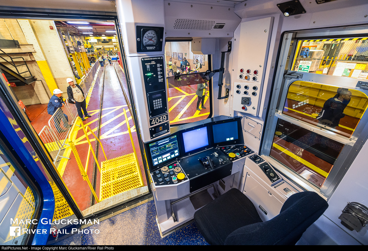 Modern Cab. The cab of R211T NYCT 4049 shows that it used for both the train operator and conductor positions. On Saturday, October 14, 2023, one of the four R211T five-car sets ordered from Kawasaki (NYCT 4045-4049) was on display at 2023 Metropolitan Transportation Authority - MTA NYCT Subways Family Day at Coney Island Shops.