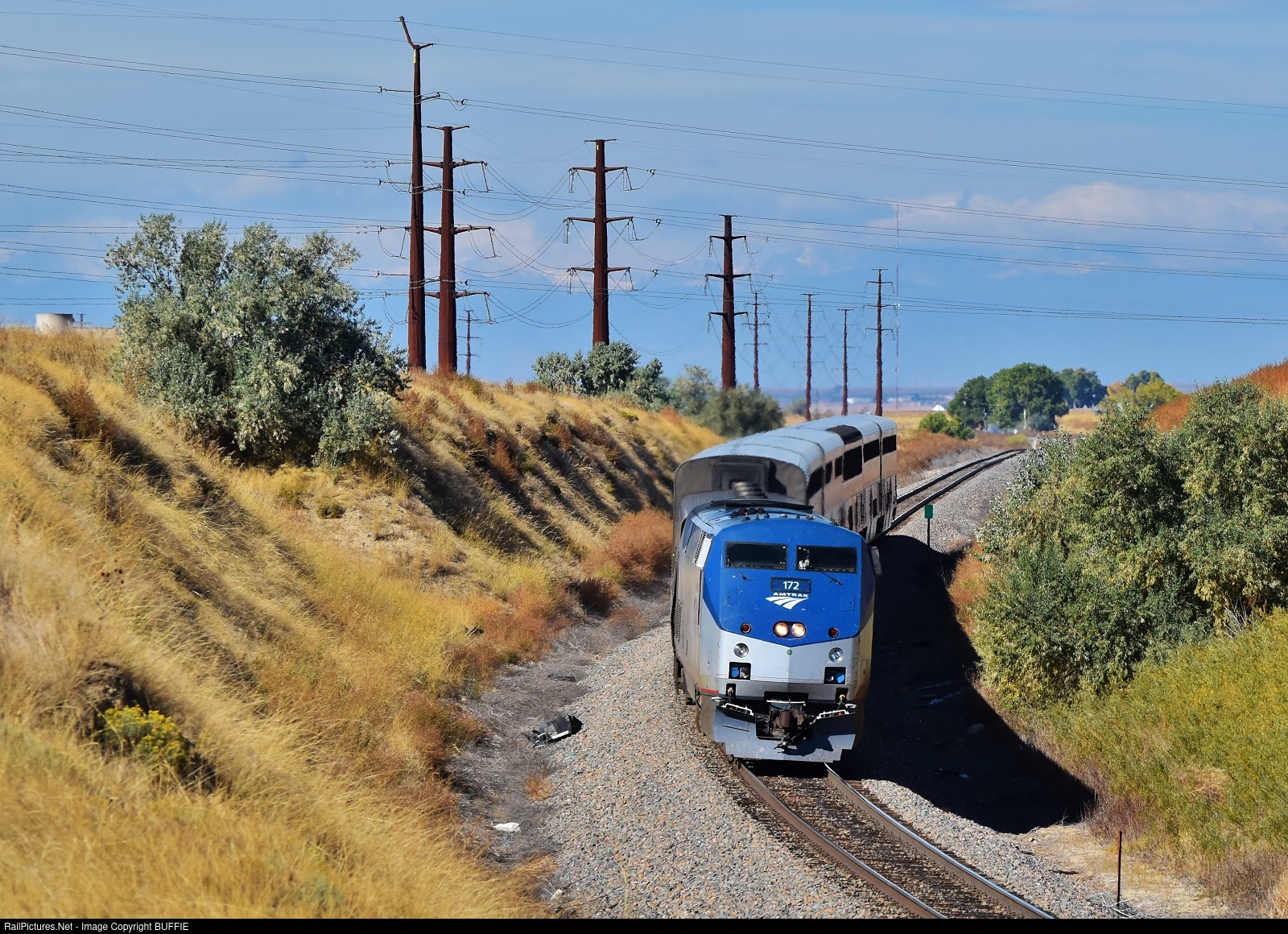 | The California Zephyr 6 train was over 12 hours late at Denver, offering this rare opportunity to get the train in good sunlight at Keenesburg, Colorado as it ran east on the Brush Sub.