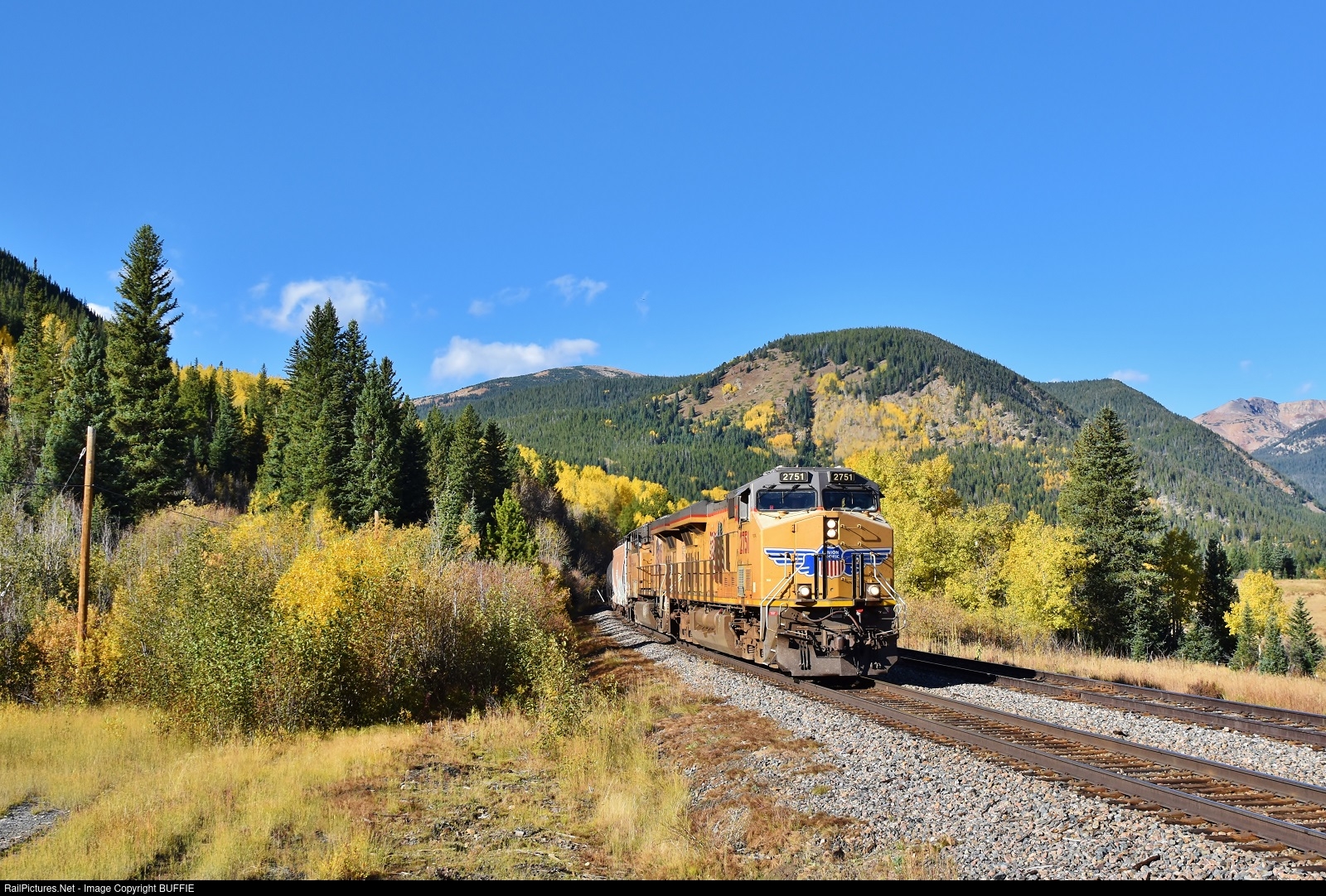 UP 2751 (ES44AC) leads a freight through the aspen trees in the Tolland Valley as it heads east on the Moffat Tunnel Sub.