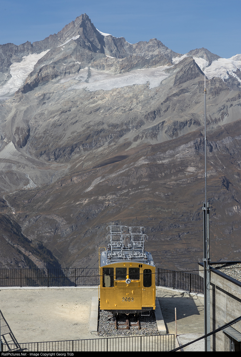 Cogwheel locomotive He 2/2 # 3003 was one of three locomotives of the Gornergratbahn (GGB) when the railway opened in 1898, delivered by SLM and BBC. Exactly 125 years later, on august 20, 2023, the locomotive, gold-plated by Piffaretti Manufaktur in Lucerne, was exhibited on the Gornergrat as "Golden Spot". In the background the 4221 meter high Zinalrothorn. Unfortunately, even 1 1/2 months after the unveiling of the locomotive, the approach path to the Golden Spot has not been completed and access to the locomotive is not available yet.