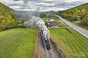 The EBT 16 morning freight steams back towards Rockhill Furnace from Colgate Grove. This run was part of the Friends of the East Broad Top Fall Reunion.