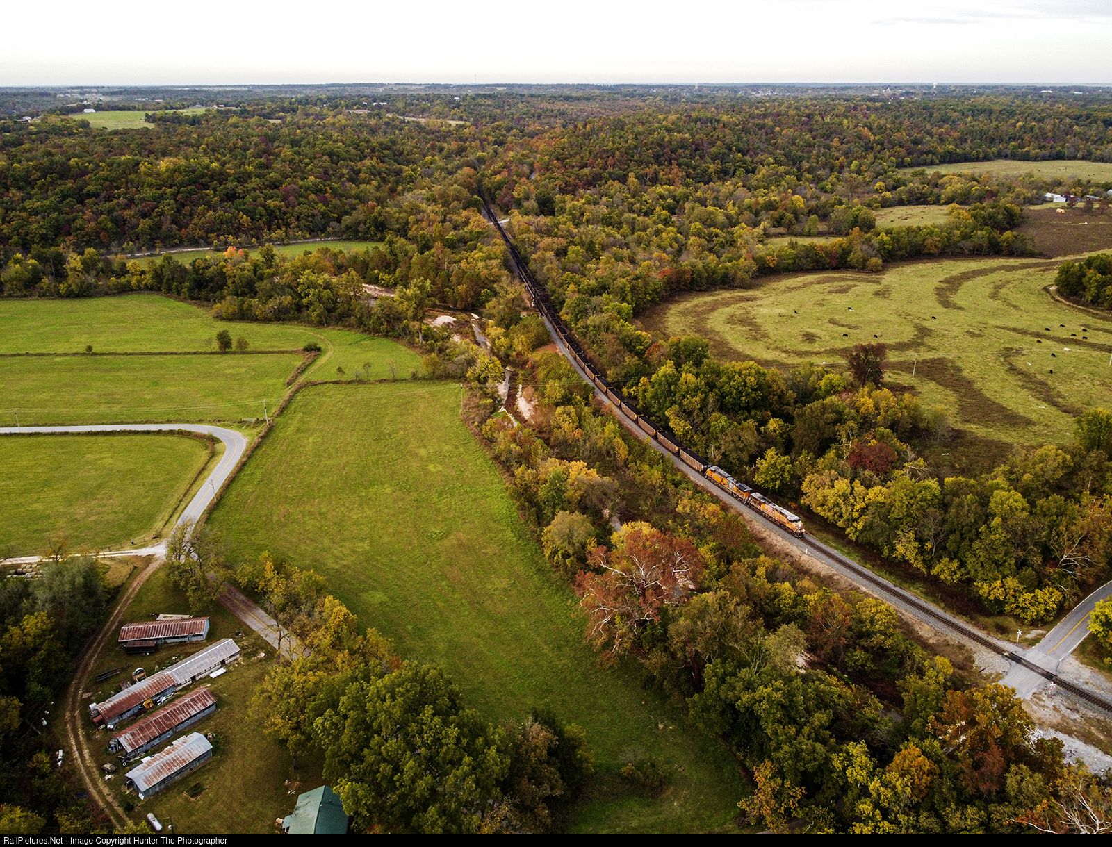 Fall At Wolf Creek | After stopping due to some problems with one of their distributed power units on the rear of the train, southbound coal train C862 rounds a curve next to Wolf Creek a few miles south of Gravette, AR late in the afternoon on a warm Saturday, October 21, 2023.