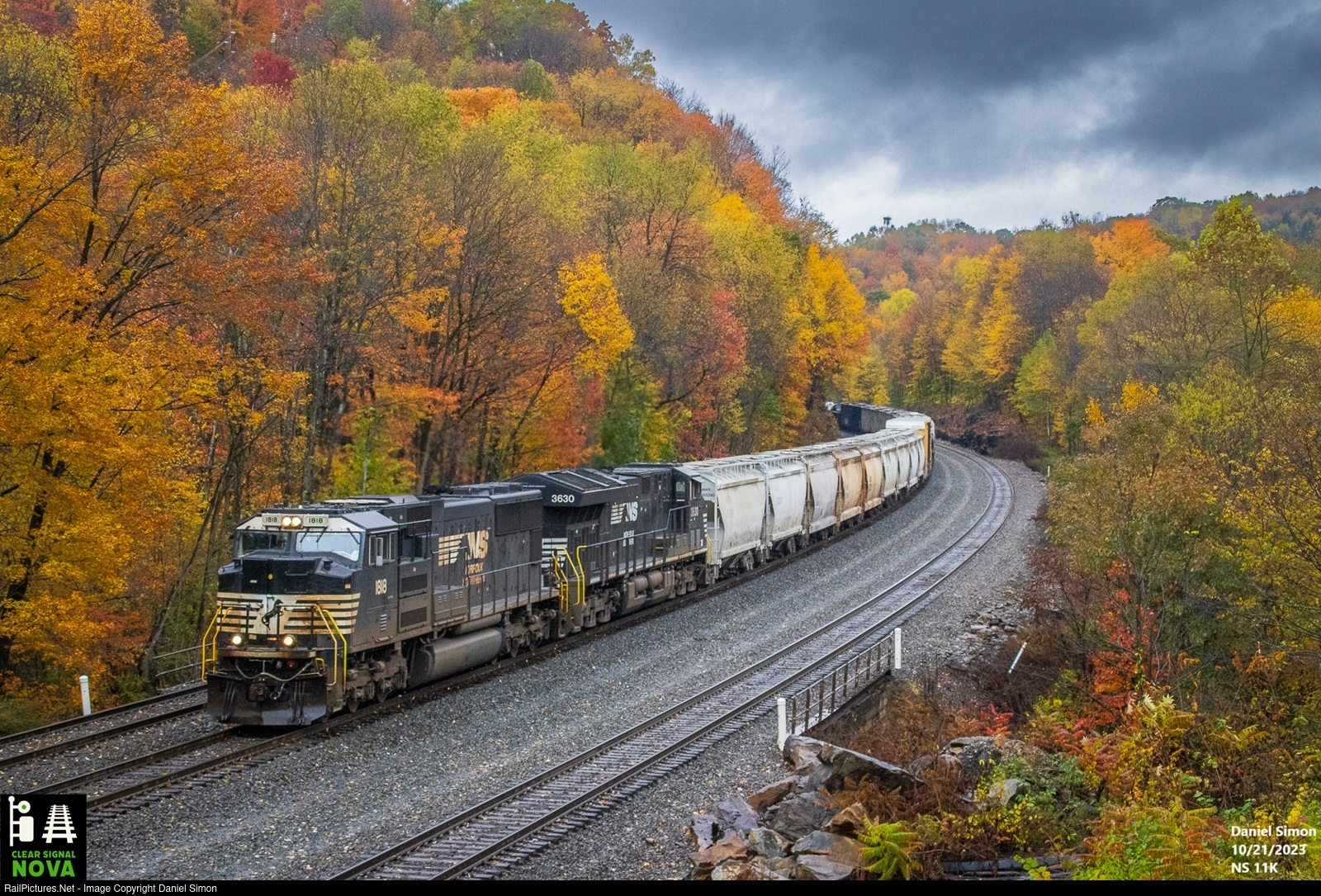 Norfolk Southern Train 11K rolls by the famous overlook in Cassandra, PA.