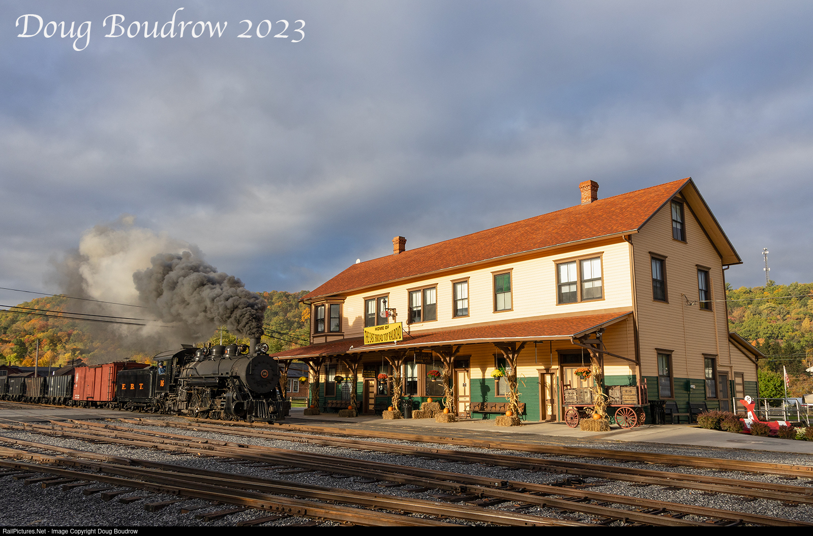 One of the most successful stories in modern rail preservation is that of the East Broad Top in Rockhill Furnace, PA. The coal and common carrier railroad was saved from scrap in 1956 by Nick Kovalchick. The railroad operated as a tourist railroad until 2011 when the entire operation was closed. In February of 2020 it was announced that the railroad would return to operation. Locomotive 16, built by the Baldwin Locomotive Works in 1916 is the first of the locomotives to return to operation running for the first time since 1956 in February, 2023. Lerro Photography hosted a photo charter at the East Broad Top on October 16th and 17th, 2023. The locomotive pulled. a mixed train and run-bys were staged in a variety of locations. Some of the scenes included antique vehicles and re-enactors. The train is shown here at the Orbisonia Depot, which like most of the railroad remains mostly unchanged.