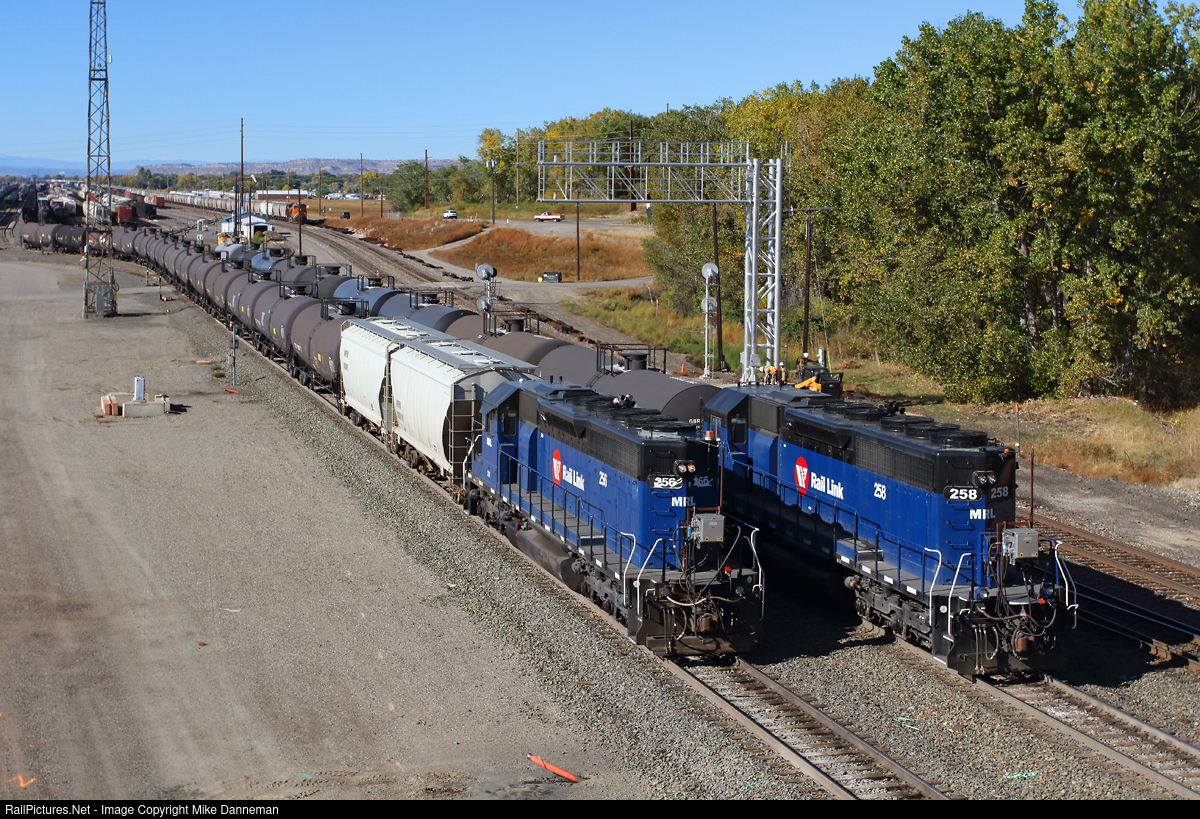 Two Montana Rail Link remote switchers work simultaneously at the east end of MRL’s large yard at Laurel, Montana, on the morning of October 8, 2023. For many years, former cabooses carried remote equipment so any locomotive off the roster could be utilized for this service. The day before, these caboose/RCL cars were still being used. But by the next morning these two MRL SD40-2XRs, now fully-equipped with the necessary RCL apparatus, switch cars at the yard.