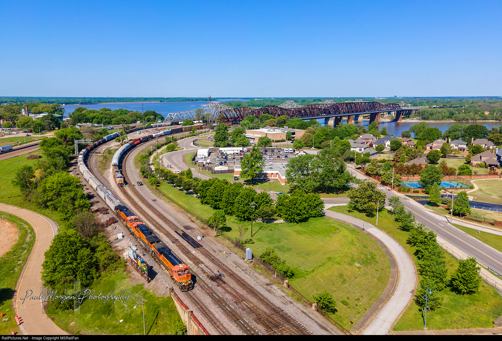 | The CN transfer job got a fresh crew while an inbound BNSF manifest crossed over the Mississippi River into Memphis, TN from Arkansas. |
