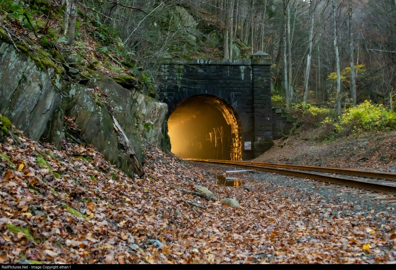 264 is seen just about to exit the eastern portal of the Hoosac Tunnel.