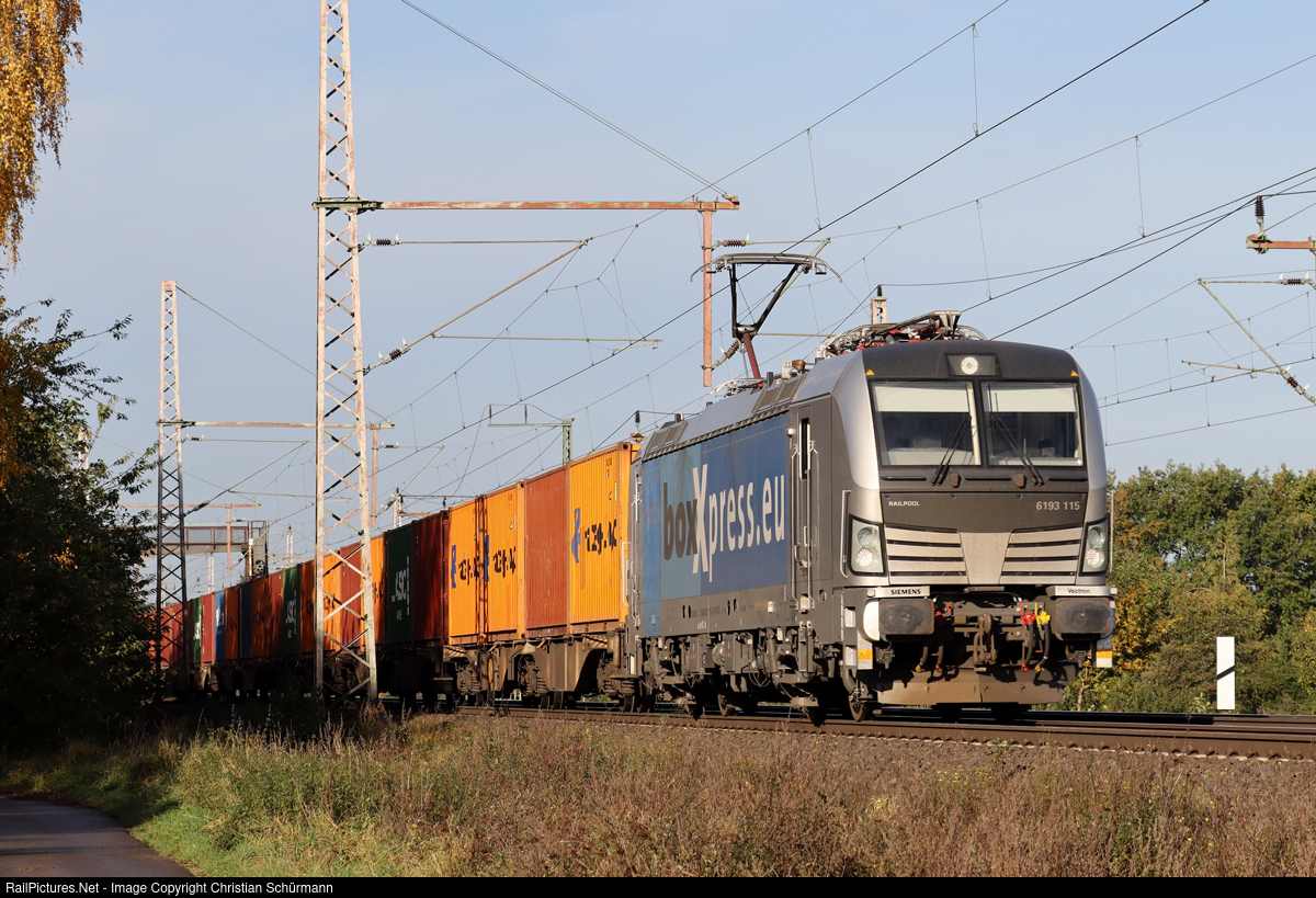 | Rpool 193 115 operating for boxXpress is passing spotting location Dedensen-Gümmer near Hannover |