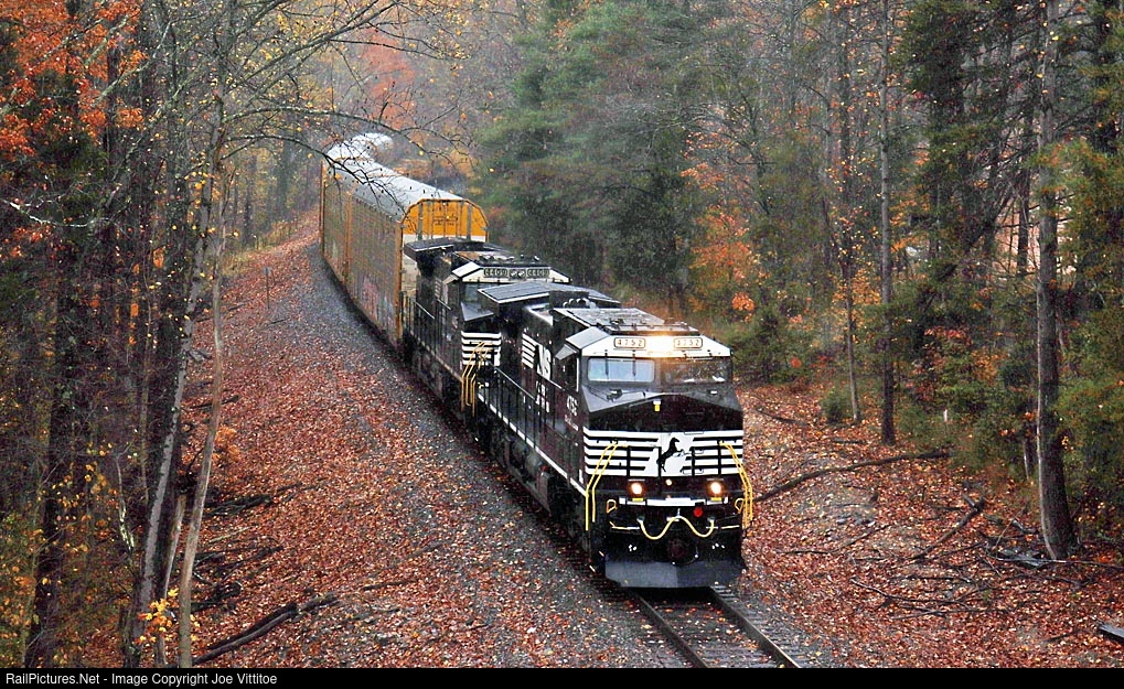With rain and wind putting an end to autumn colors NS 125 heads east towards Louisville with a newly rebuilt 4752.