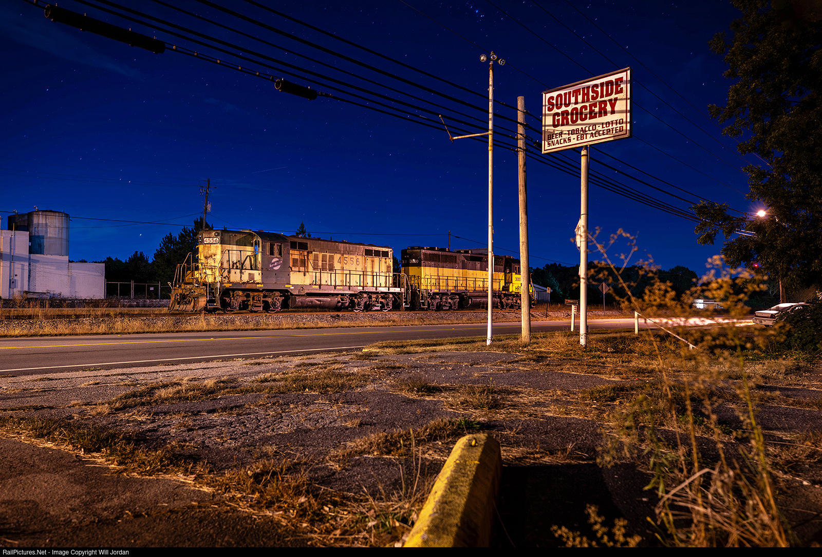 | Former CNW GP9 4556 and St. Lawrence & Atlantic GP40 3000 rest beneath clear skies on Toccoa's south side on a crisp night awaiting the call to duty in the morning. |